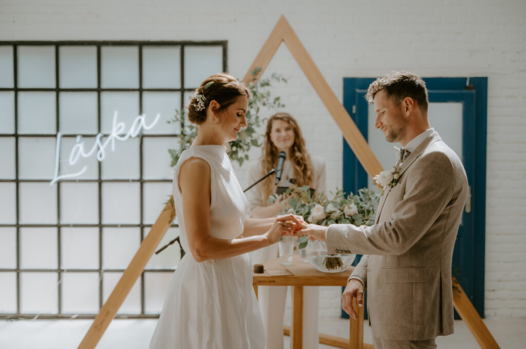 „Přáli jsme si nemít tradiční svatební obřad, ale spíše rituál plný sdílení s našimi nejbližšími. Chtěli jsme mít prostor spoluutvářet to, co bude oddávající říkat, aby to pro nás bylo osobní a blízké. Hledali jsme někoho, kdo nám naše přání pomůže zrealizovat.