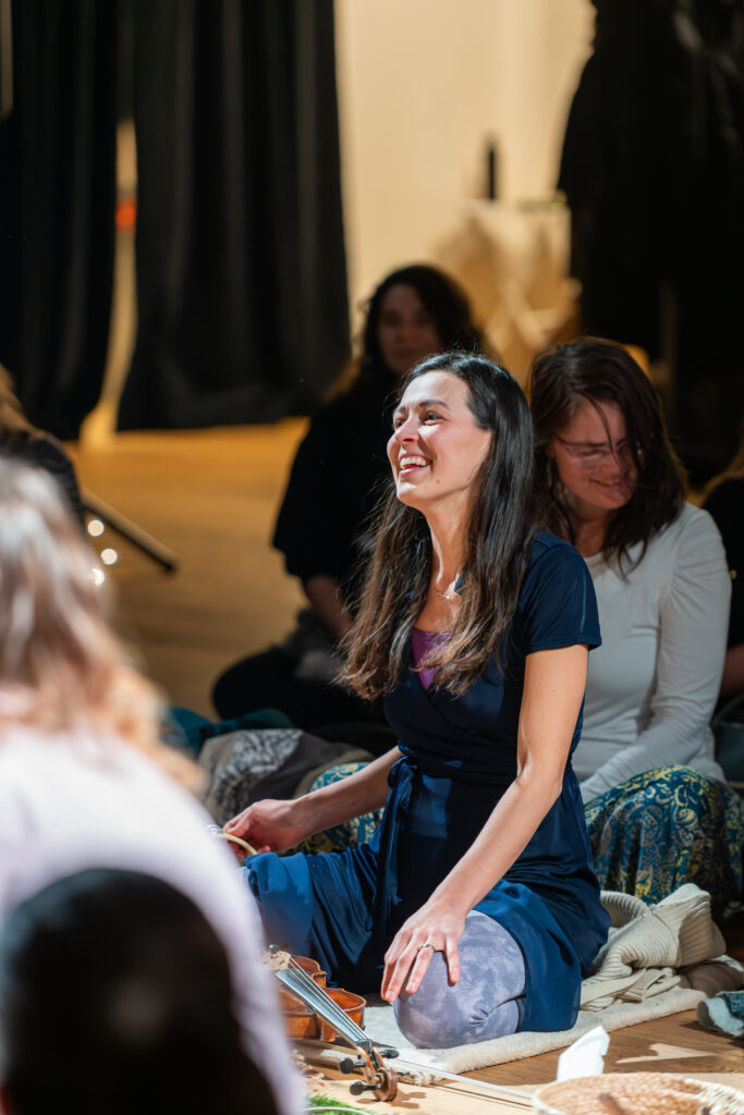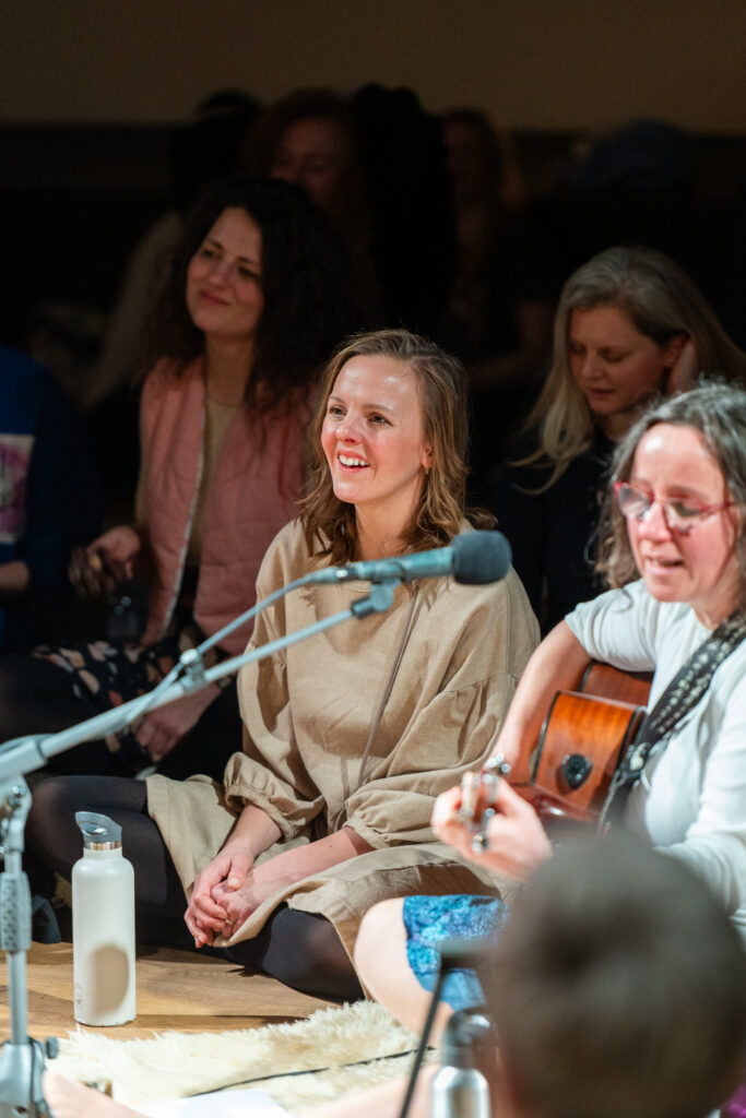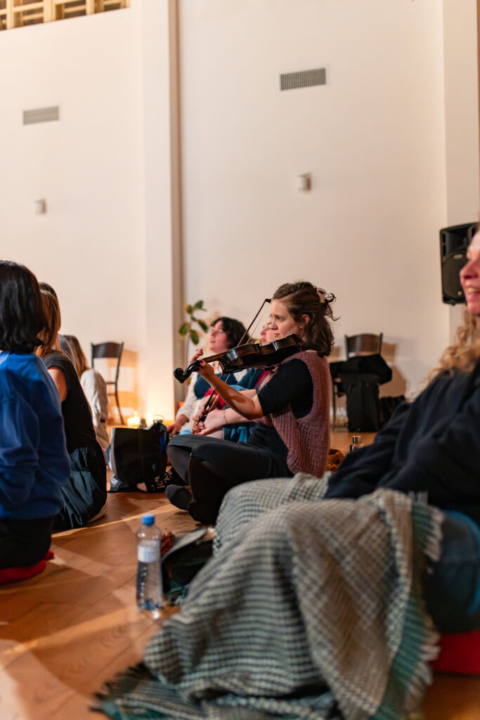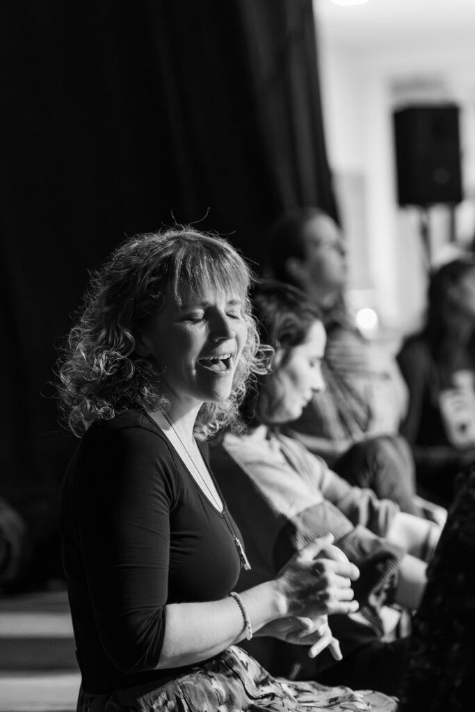 Všechny jsme na jedné úrovni. Žádné pódium, žádné publikum. Jen my, naše hlasy a společný prostor.